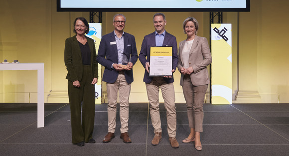 Die VauQuadrat GmbH aus Offenburg-Elgersweier erhält ein Preisgeld von 15.000 Euro für innovative Entwicklung für die Tiefeninduktion in der Fügetechnik. Die Wirkung der elektromagnetischen Induktion wird technisch vor allem bei elektrischen Maschinen wie Generatoren, Elektromotoren und Transformatoren genutzt. Im Haushalt sind Induktionskochfelder weit verbreitet, da sie energieeffizient arbeiten und die Reaktionszeit kurz ist. Auch im Stahlbau kommt die Induktionstechnologie zum Einsatz. Dort kann das bisher übliche Flammrichten durch Induktionsverfahren ersetzt werden, wodurch der Energieverbrauch stark reduziert wird. Bei den neu entwickelten Geräten ist die Einwirktiefe besonders hoch, sodass von Tiefeninduktion gesprochen werden kann. Vorteilhaft ist auch die erhöhte Prozesssicherheit, die verbesserte Arbeitssicherheit und die verkürzte Arbeitszeit.