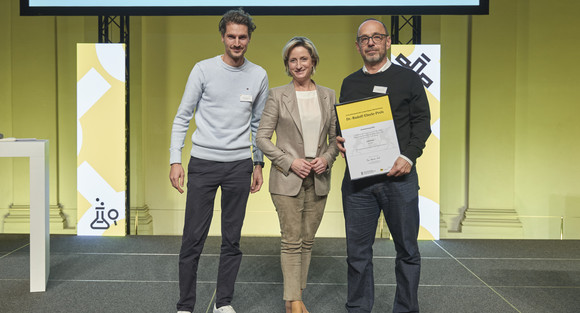 Die Glassomer GmbH aus Freiburg im Breisgau erhält 15.000 Euro für ihre innovative Methode zur Glasverarbeitung durch Glas-Spritzguss. Quarzglas ist ein hochrelevantes Material für verschiedene Industrien, da es hohe Transparenz mit hoher thermischer, chemischer Stabilität und Kratzfestigkeit kombiniert. Quarzglas gilt daher als erste Wahl für Beleuchtungen, Optiken, haptische Schnittstellen und technische Spezialbauteile. Es lässt sich jedoch mit konventionellen Methoden schwer bearbeiten, daher waren die realisierbaren Formen bisher immer stark eingeschränkt und zudem meist sehr energieintensiv. Die Glassomer GmbH entwickelte ein Verfahren zum Spritzguss von Glas, dass die Formgebung des Glases bei 130 °C ermöglicht. So lassen sich einerseits Ressourcen sparen, andererseits werden ganz neue Designs in Quarzglas ermöglicht. Dies ist für verschiedene Industrien von Nutzen, zum Beispiel um neuartige, effizientere Belichtungen, Optiken oder Mikro-Synthesereaktoren herzustellen. In letzteren können mit dem Verfahren thermisch und chemisch stabile Glaschips produziert werden, die neue innovative Möglichkeiten eröffnen, etwa bei der Verarbeitung aggressiver Chemie.