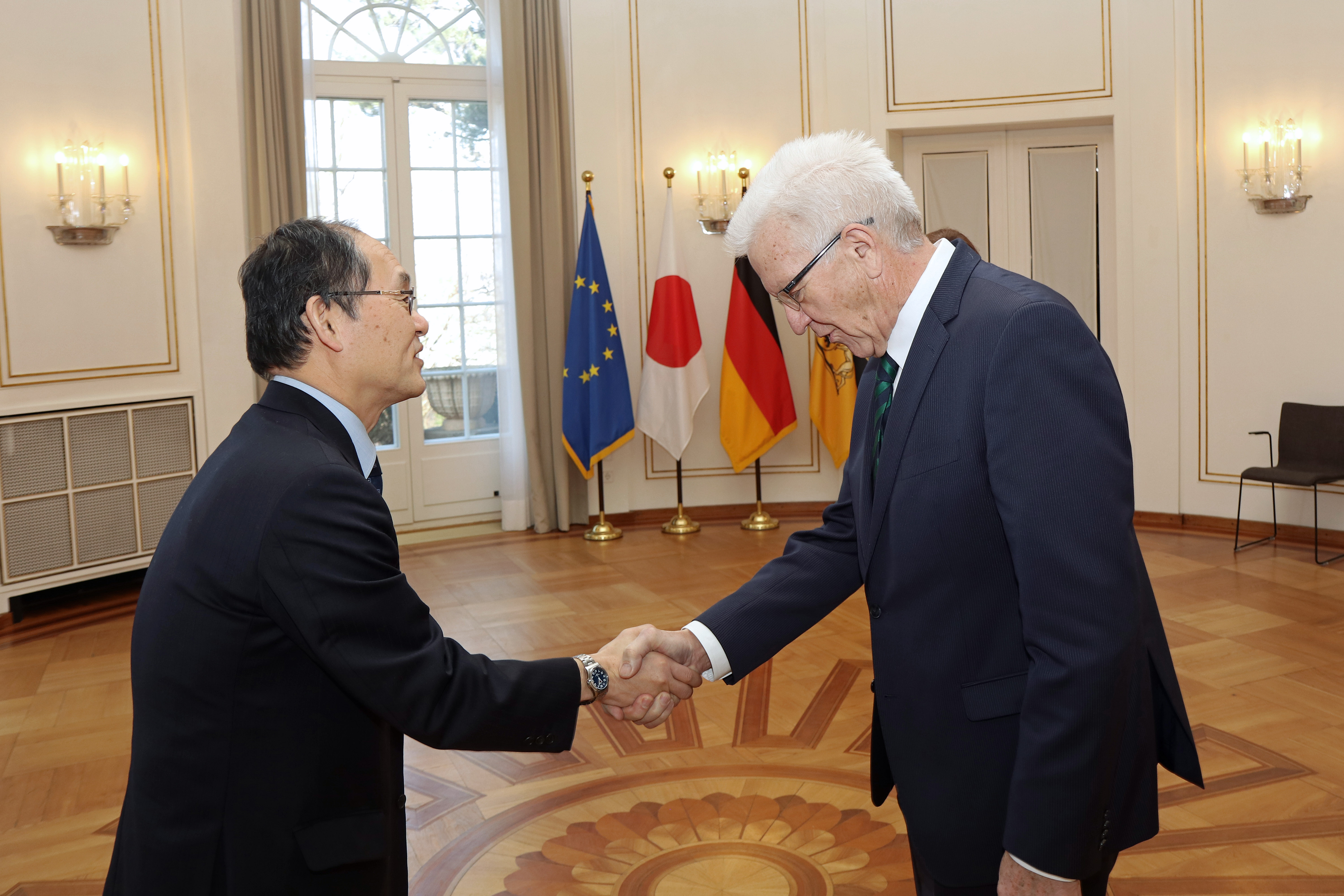Ministerpräsident Winfried Kretschmann hat den Botschafter von Japan, Hidenao Yanagi, zu einem Antrittsbesuch in der Villa Reitzenstein in Stuttgart empfangen.